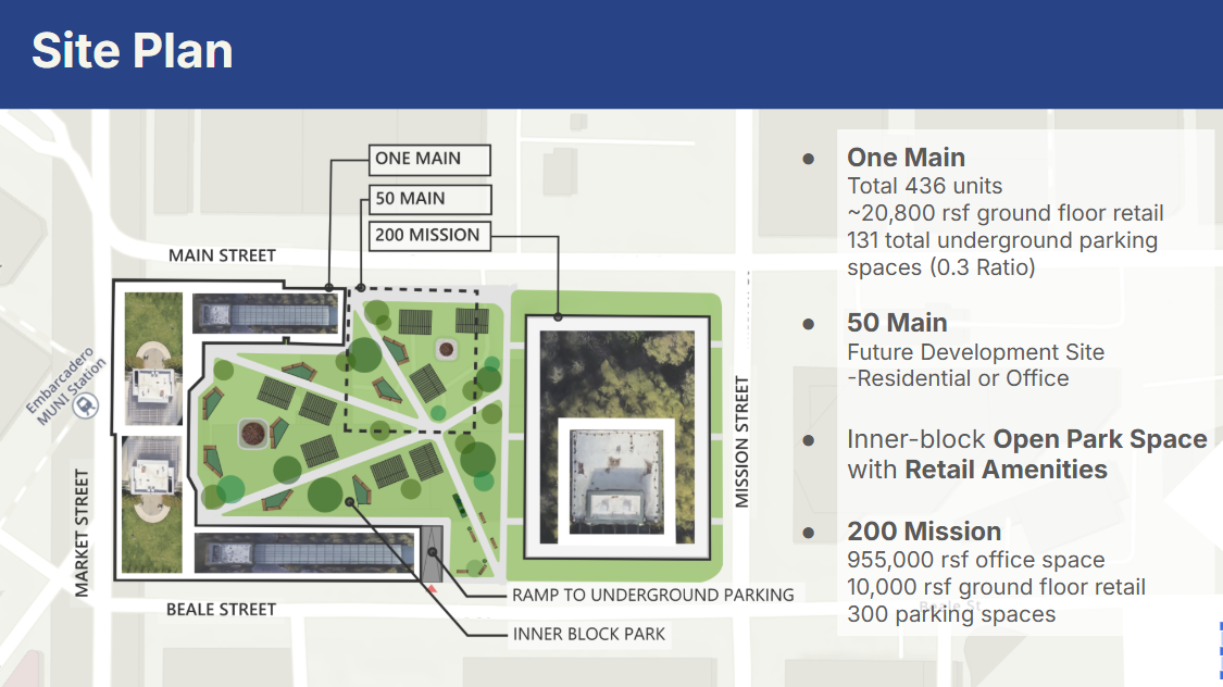 The former PG&E Headquarters in San Francisco encompasses a whole city block and is ripe for redevelopment. As a part of my UC Berkeley Masters of Real Estate Development program, I, along with my two team members, proposed a large-scale redevelopment of the former PG&E site located on Market and Mission St. in SF’s FiDi. Our proposal included reskinning the 77 Beale office tower, updating the amenity spaces, adding a rooftop garden and bar, and renaming it to 200 Mission. Converting the historic office towers on Market St. to a luxury residential project called “One Main”, tearing down the 50 Main parking garage for a future development site and temporary activation with retail and dining pop-up booths and park space. This project utilized state incentives for housing and state and federal tax credits for historic buildings.